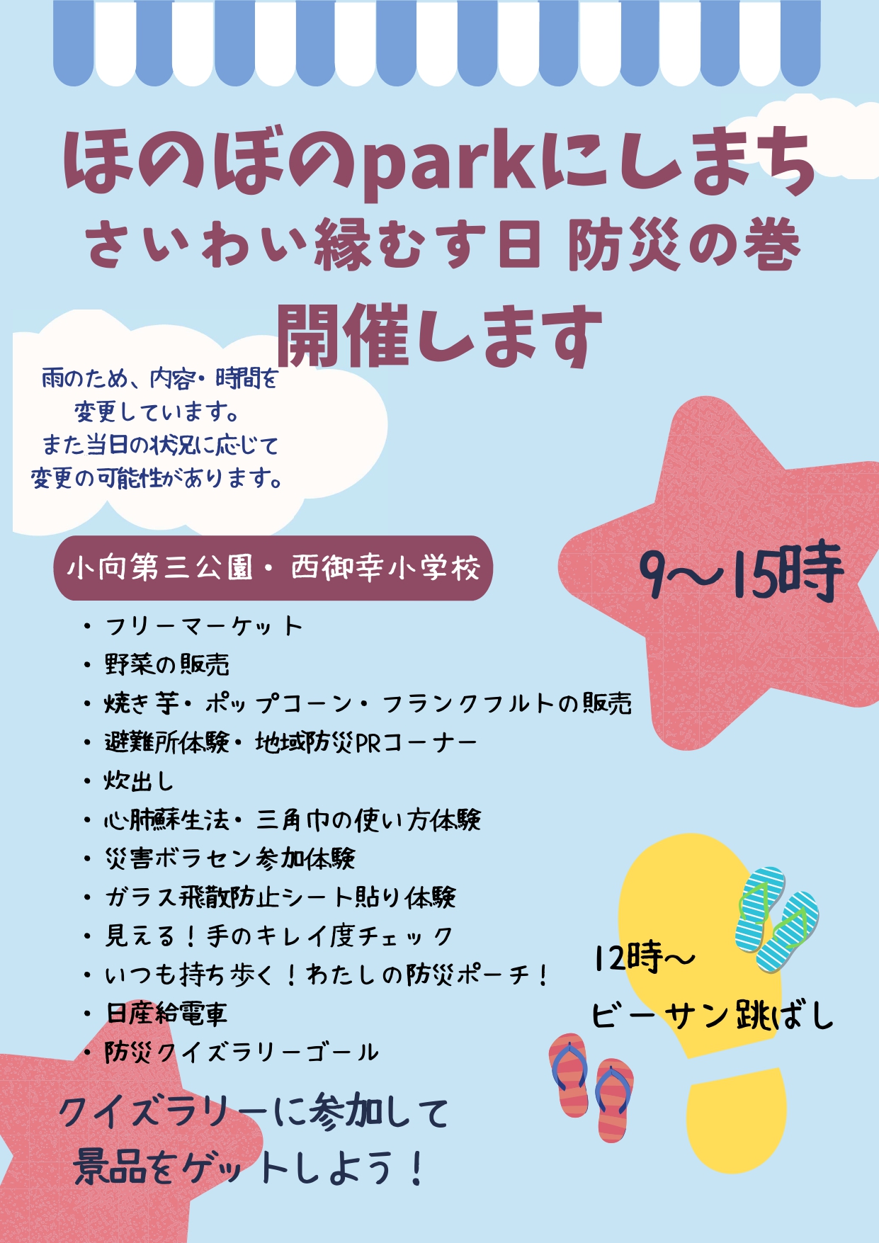 雨予報のため一部内容を変更して開催いたします。